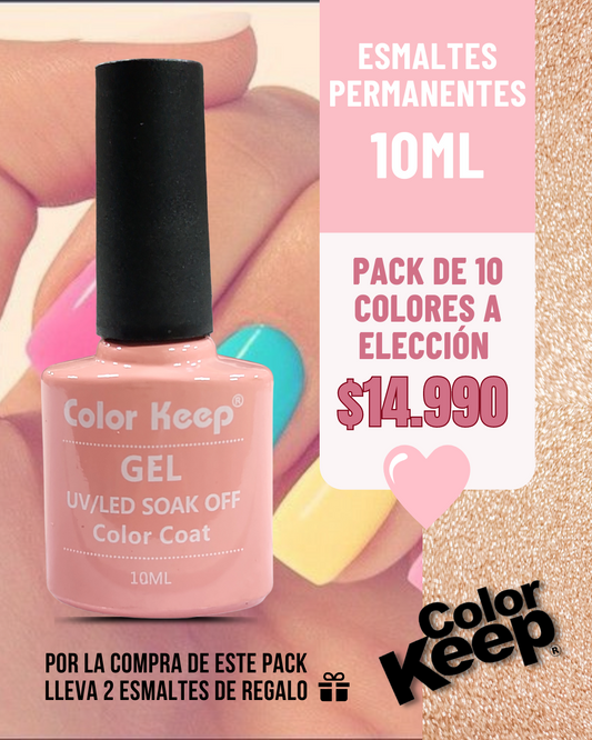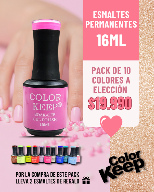 Precio habitual A partir de $10.990 CLPPrecio habitualPrecio unitario / porPrecio de oferta A partir de $10.990 CLPEsmaltes permanentes 10ml Color Keep